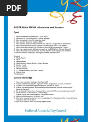 Australia Day Trivia Questions / This new page has been designed to give you a daily trivia question to complete using a customized google search built specifically for the game.. Act general info, act strategies are you studying for the act? Chloe is a social media expert and sha. One great way to add some extra prep to your day. You can use this swimming information to make your own swimming trivia questions. You can use this swimming information to make your own swimming trivia questions.